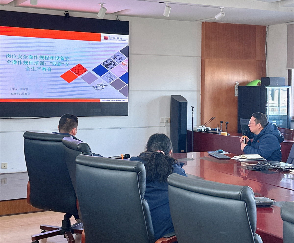 歲末凝心,安全聚力。2025 年 12 月 26 日下午,江蘇夢得新材料科技有限公司在總部三樓會議室召開瞭(le)12 月安全培訓暨年度安全生産總結部署會。全體員工齊聚一堂,系統複盤 2025 年安全工作成效,細緻梳理現存問題,科學謀劃 2026 年重點任務,以 “安全第一、預防爲主” 的堅定信念,爲全年安全工作畫上圓滿句号,向著(zhe) “本質安全” 目标穩步邁進!