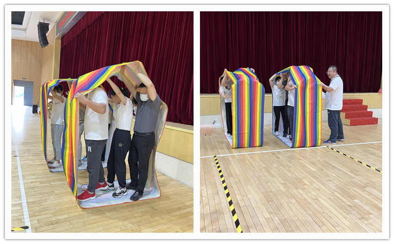 穿越雷陣是一個團隊協作的項目,主要鍛(duàn)煉團隊合作精神及默契度。三組隊員在緊張的比賽中都配合的很好,並(bìng)順利完賽。