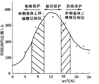 圖1-1鍍(dù)層(céng)中鎳含量與耐蝕性的關系(未鈍化)