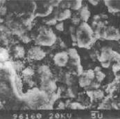 圖4-2鹽霧腐蝕後鍍層的微觀形貌[6] 。由圖4-2可看出,純鋅鍍層腐蝕表面疏松(見圖4-2a),用1%醋酸水溶液清洗鍍層表面腐蝕産物。發現鋅鎳鍍層表面産生瞭大量微裂紋(見圖4-2b)作剖面金相觀察。裂紋是貫穿鍍層的,而鋅鍍層則未發現。